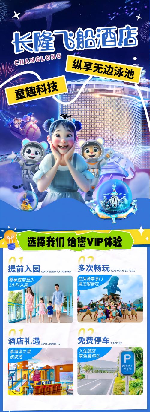Zhuhai Chimelong Spaceship Hotel Ocean Kingdom/Chimelong Show/Spaceship Park/Kaka Tiger/Hotel Package with Breakfast and Dinner and Dining