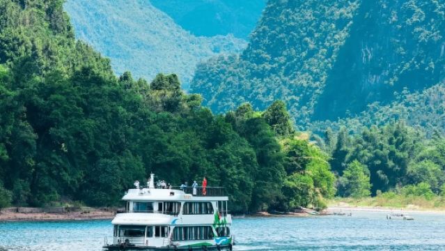 Bamboo rafting on the Li River Xingping section (Chaobanshan Mashan Pier, electric bamboo rafts for a smooth ride, includes the 20 CNY background scenery and Nine-Horse Fresco Hill, 50-minute stop from 10:20-11:10); Dining time 12:00-12:40; Xingping Ancient Town (walking on stone-paved roads, visiting souvenir shops, experiencing the rustic charm, 1-hour stop from 12:50-13:50).