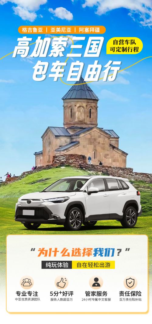 Different packages correspond to different itineraries, including private charters, guides, airport pick-up, 1-day tours, multi-day tours, and hotels in Georgia. For details, please contact customer support.