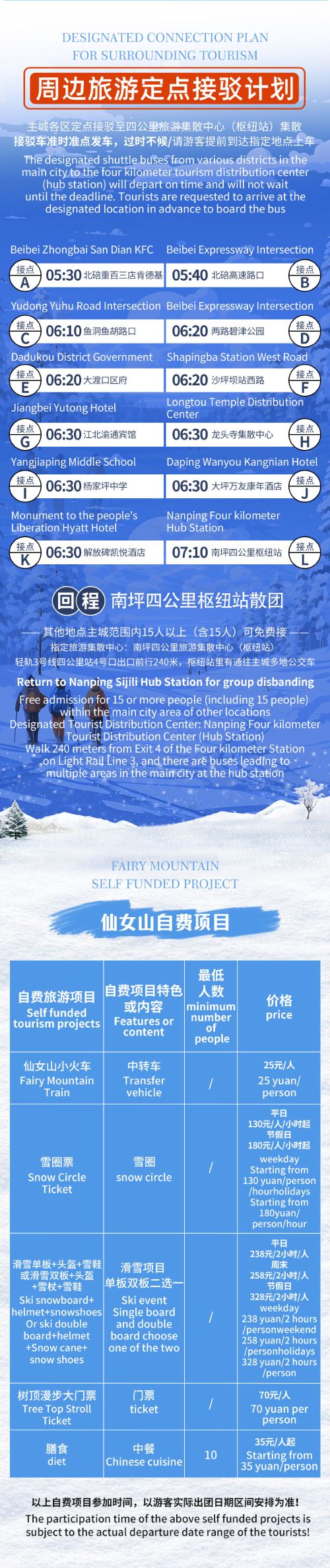 2. Snow is a seasonal natural phenomenon, and the quality of snow scenery is primarily influenced by weather conditions. Tours will still proceed if the optimal viewing period has not been reached. Travelers who are concerned about this should carefully consider before placing an order.