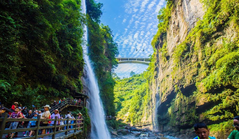 The Enshi Grand Canyon Scenic Area, a national 5A attraction and geological park, is globally renowned as a "natural museum" showcasing a unique composite karst landscape featuring crevices, sinkholes, and rock pillar formations. Blessed with pristine ecology and unspoiled natural beauty, it boasts a 10,000-meter cliff gallery, thousand-foot cascading waterfalls, hundreds of solitary peaks, and miles of deep, serene valleys. The Yulong Crevice is hailed as "Earth's Beautiful Scar," while the Yizhuxiang Column was named one of China's top 40 iconic landmarks by international media.