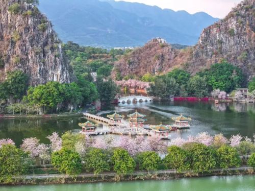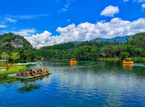 Seven-star Crag is hailed as a "fairyland on earth," boasting mountains that rival the beauty of Guilin and lakes as enchanting as those in Hangzhou.