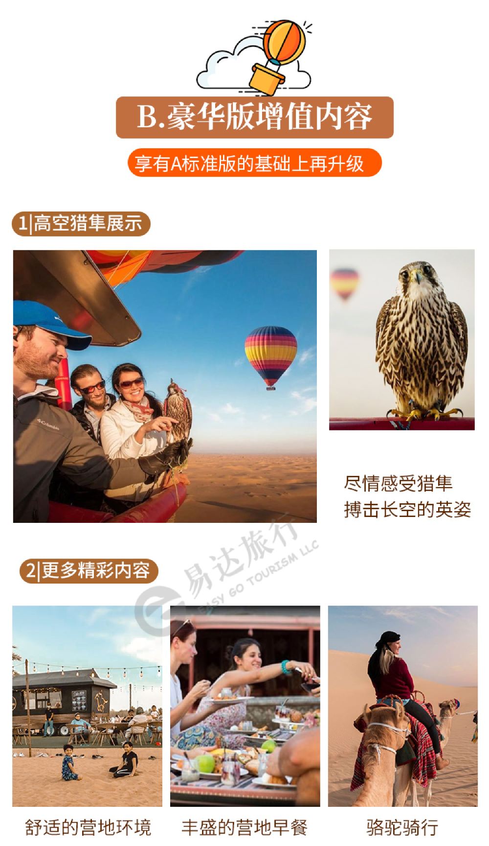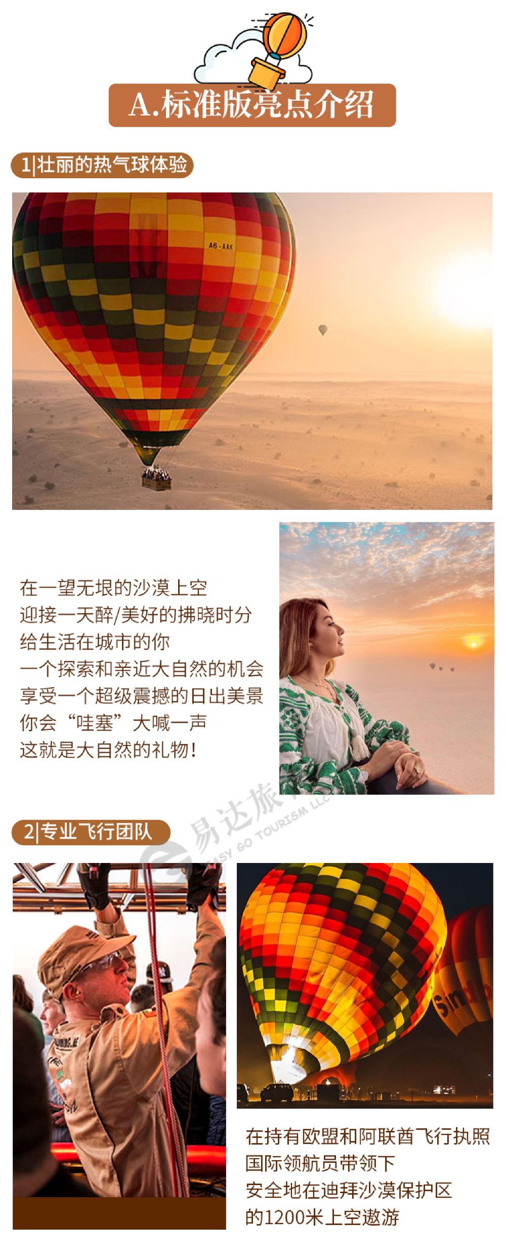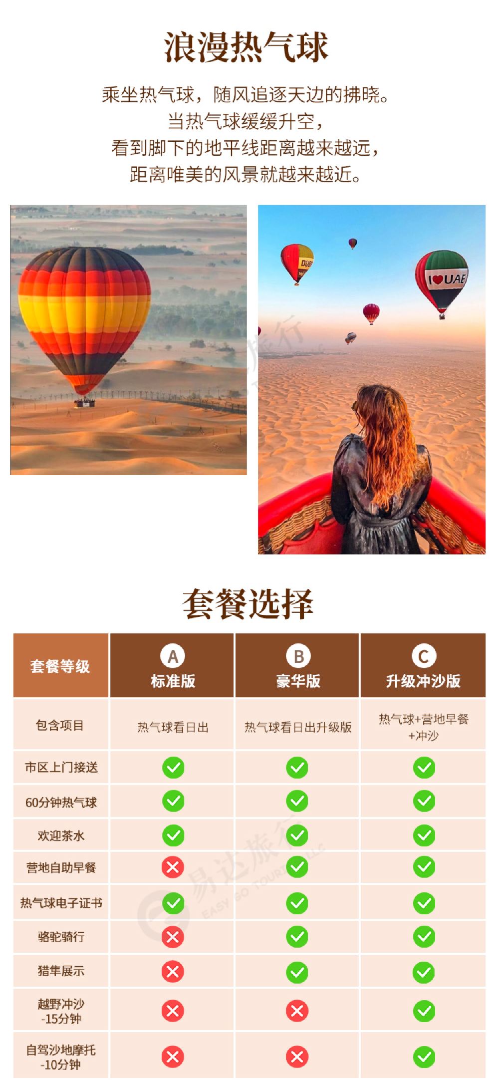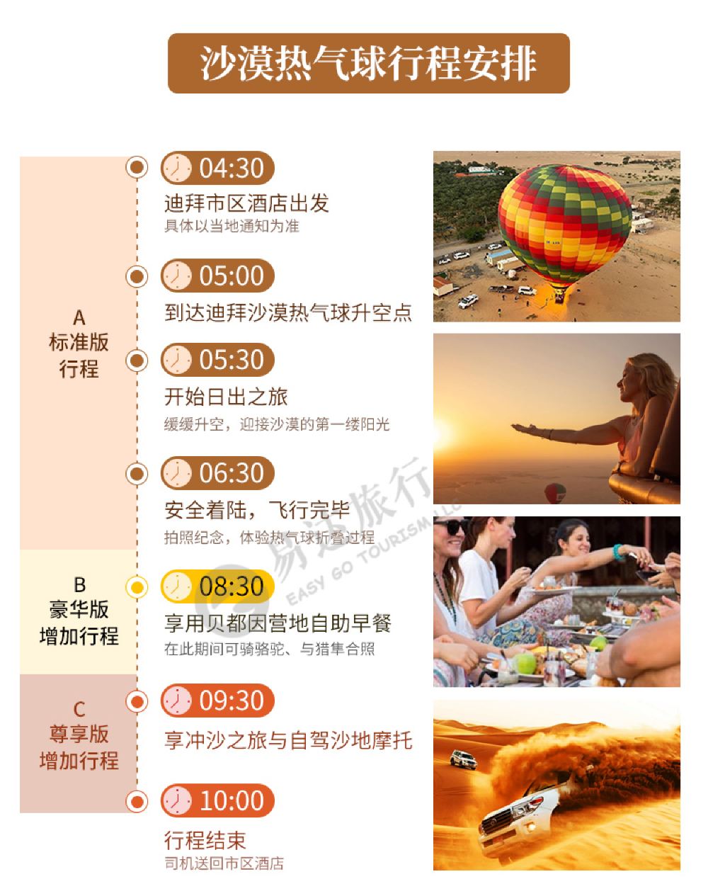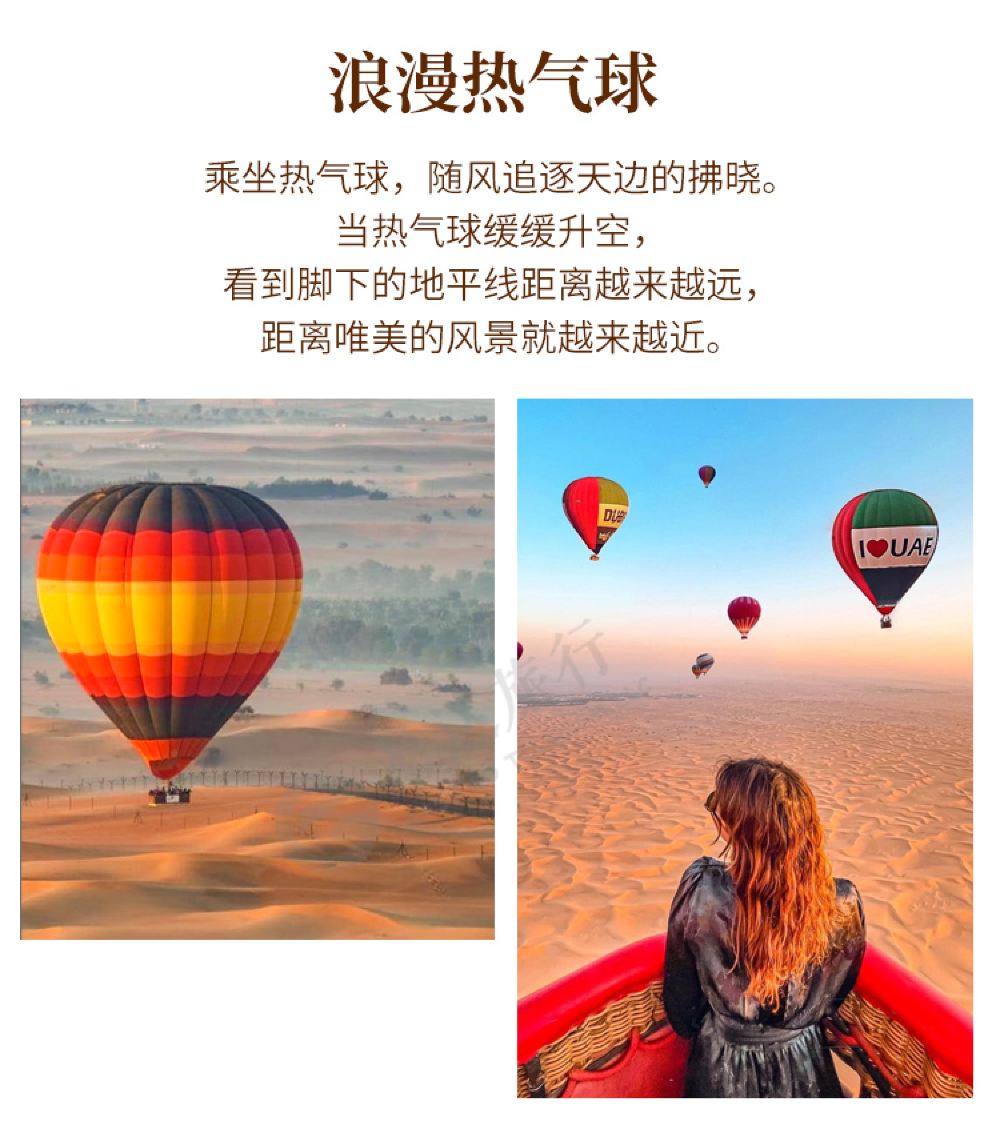 9: Since the purpose of this itinerary is to enjoy the desert sunrise via a hot air balloon ride, the start time may vary slightly depending on the daily sunrise time, generally around 5:00-6:00 in the morning, with efforts made to take off before sunrise.