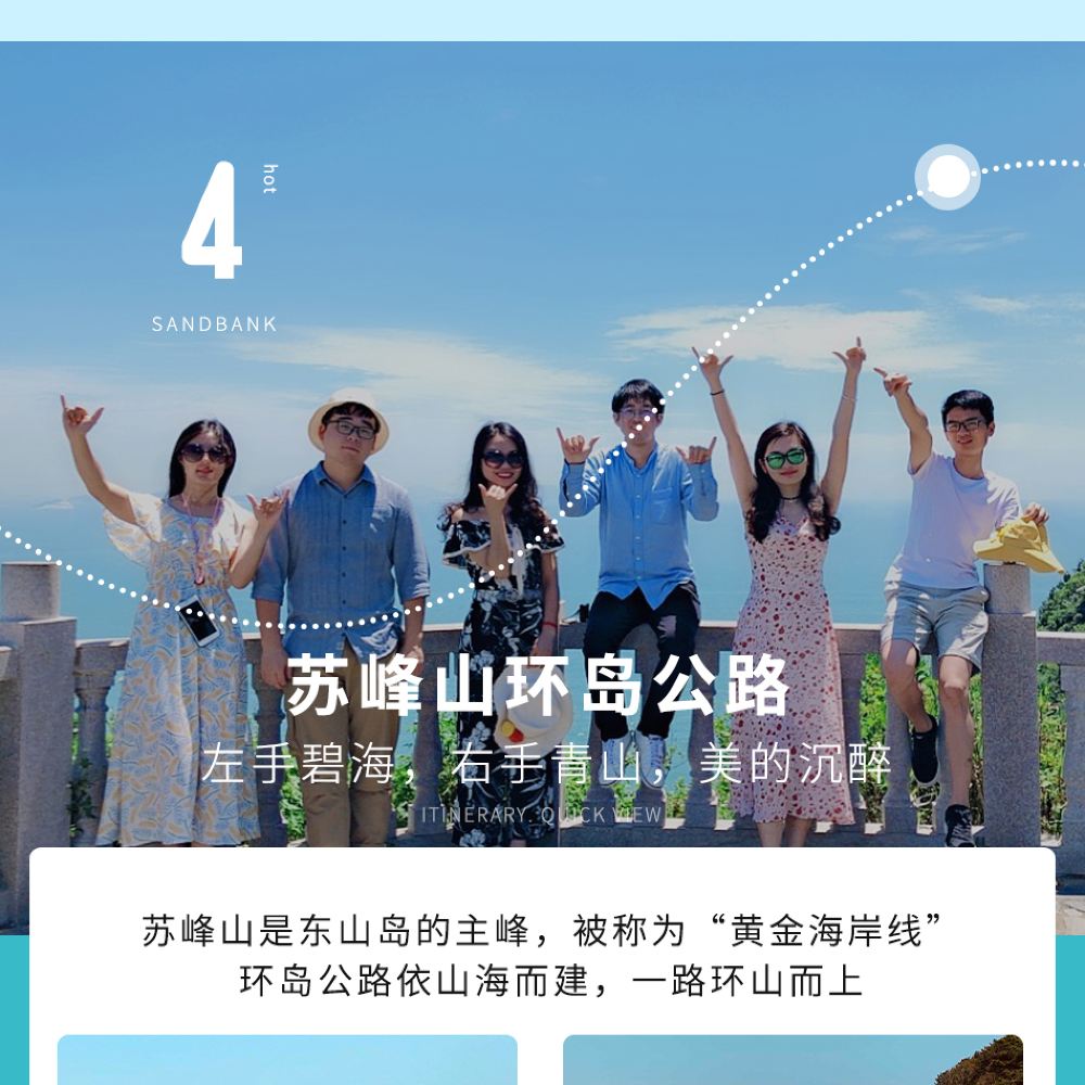 Route A: Dongshan Island + Sufeng Mountain + Nanmenwan + Fishbone Shoal (After the tide recedes, a fishbone-shaped sandbar will appear in the middle of the sea at Fishbone Shoal)