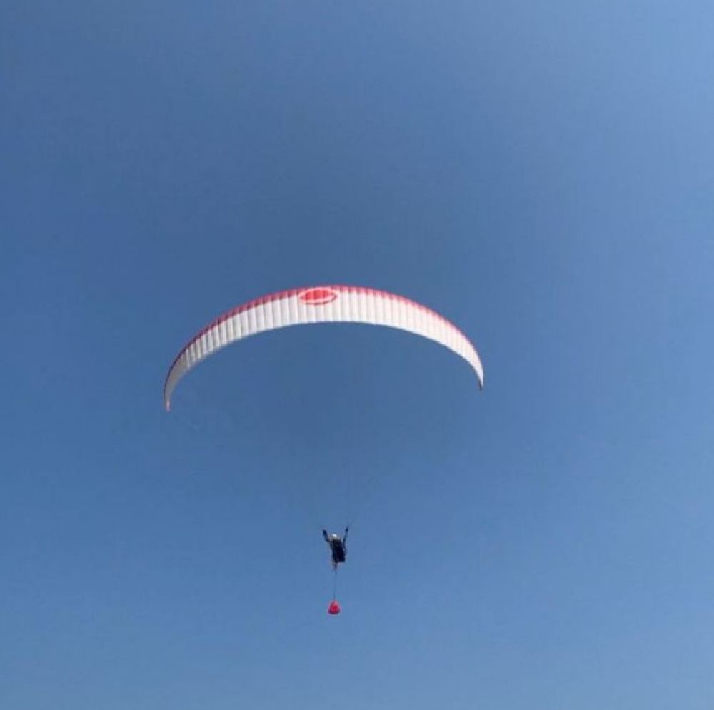 7. During paragliding takeoff, please fully cooperate with the instructor by leaning slightly forward, applying coordinated force, and controlling your body's center of gravity to run in the direction indicated by the instructor until you've completely cleared the mountain.