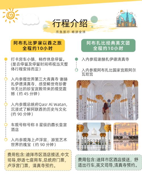 1-day tour in Abu Dhabi: This product departs from Dubai, featuring visits to the Louvre, Presidential Palace, and Grand Mosque. Hotel pick-up starts at 9 AM, returning to Dubai around 7 PM.