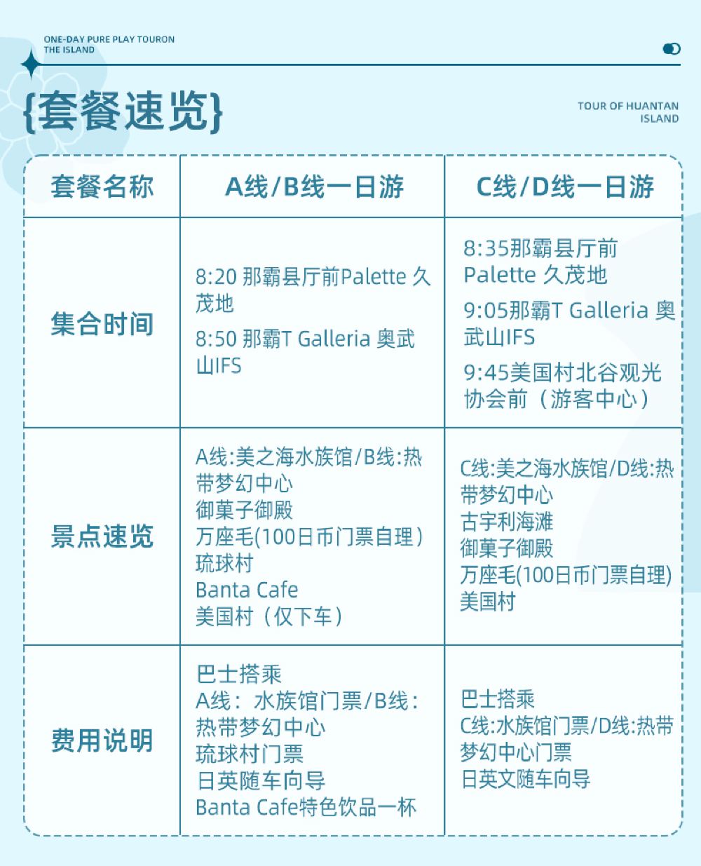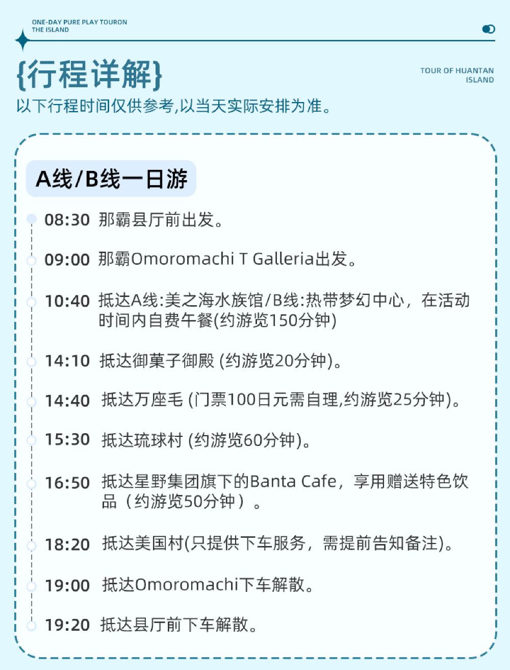 The Okinawa northern sightseeing bus has Route A and Route C. For detailed itinerary information, please refer to the image content details. The meeting point is at the Prefectural Office.
