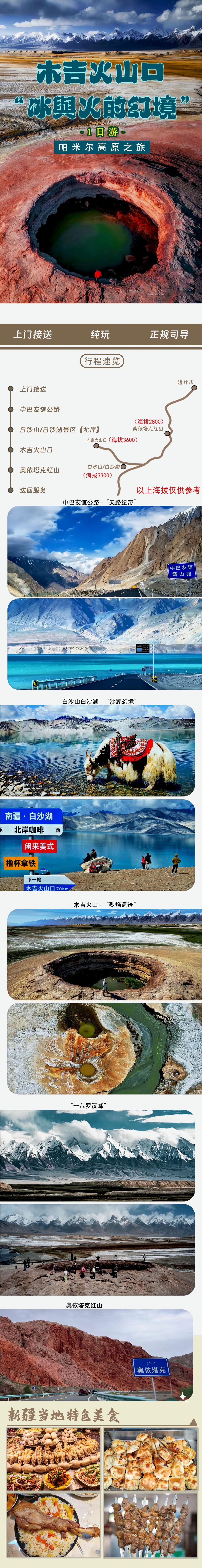 [Hidden Gems] : Muji Volcanic Vent, Eighteen Arhats Snow Mountain, White Sand Mountain/White Sand Lake attraction; admire the snow-capped mountains and lakes along the Karakoram Highway on the Pamir Plateau.