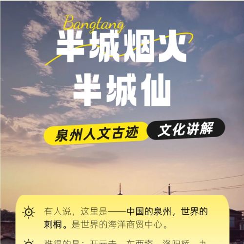 [Suggested Itinerary] [2-hr live guide] Choose 1 from the following attractions: Kaiyuan Temple, Maritime Museum, Fujian-Taiwan Kinship Museum, Intangible Cultural Heritage Museum. [4-hr leisure guide] Select 1 from Kaiyuan Temple, Maritime Museum, Fujian-Taiwan Kinship Museum, or Intangible Cultural Heritage Museum; other recommended attractions include West Street, Guanyue Temple, Qingjing Temple, Tianhou Palace, Luoyang Bridge, and Qingyuan Mountain. The itinerary can be customized based on interests and duration. [6-hr leisure guide] Choose 1-2 attractions from Kaiyuan Temple, Maritime Museum, Fujian-Taiwan Kinship Museum, or Intangible Cultural Heritage Museum; other recommended attractions include West Street, Guanyue Temple, Qingjing Temple, Tianhou Palace, Luoyang Bridge, and Qingyuan Mountain. The itinerary can be customized based on interests and duration.