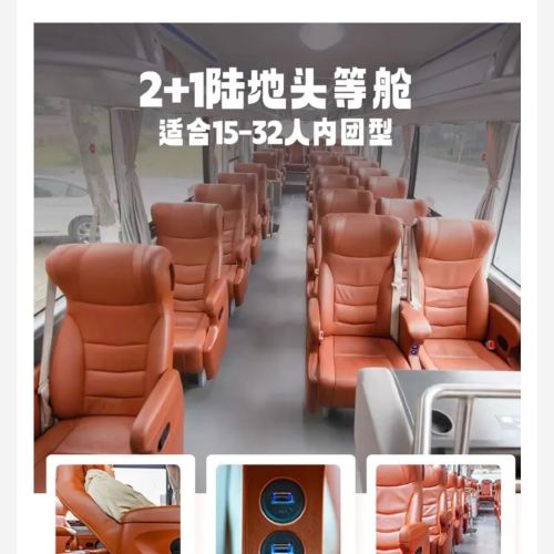 2+1 First Class: 32-passenger group with 3 seats per row, more spacious seating with adjustable chairs
