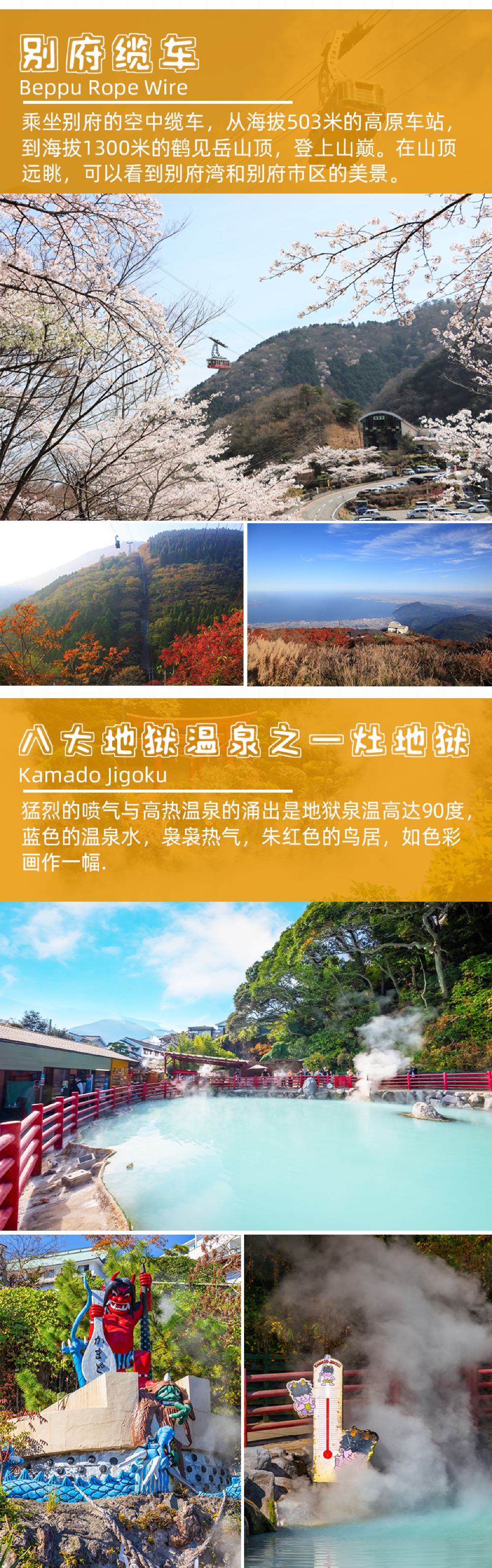 Enjoy Beppu Jigoku: Scenic cable car views and unique hot springs at Kamado Jigoku.
