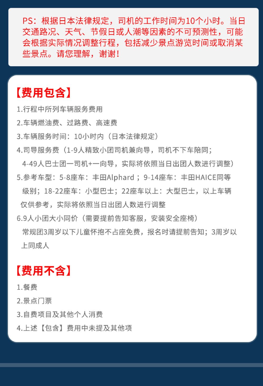 Using officially licensed green-plate vehicles approved by the Japanese government, ensuring your safety!