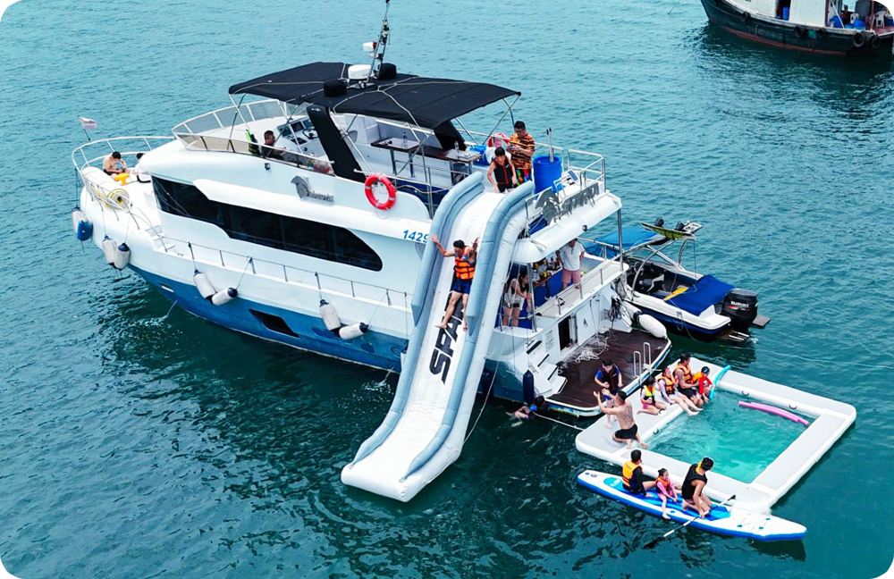 √ Price includes water activities: floating mat, inflatable trampoline, speedboating banana boat