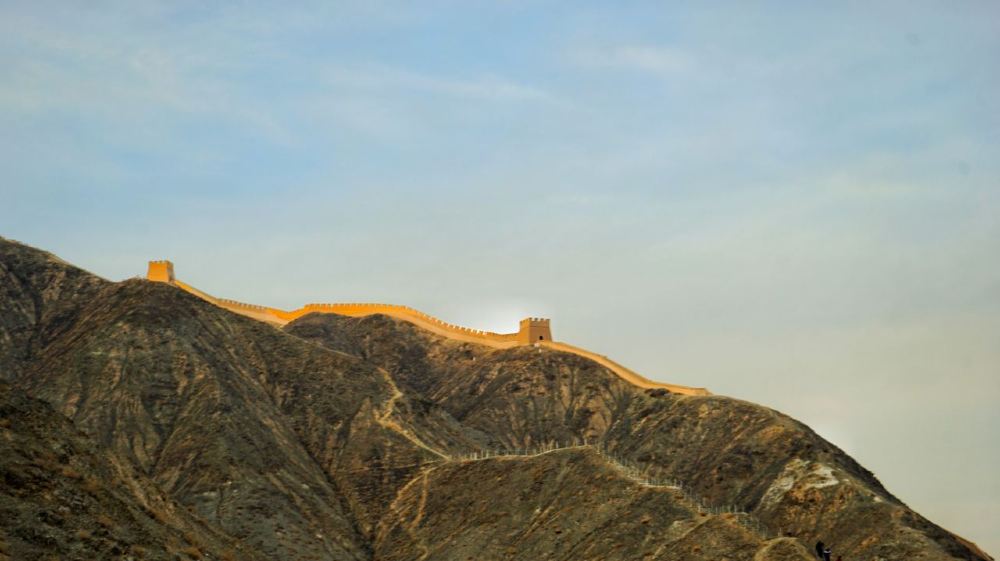 ▲ The Overhanging Great Wall Scenic Spot is located on the northern slope of Heishan Mountain, north of Shiguan Gorge, 8 km away from the Guan City of Jiayuguan. In the 18th year of the Jiajing reign of the Ming Dynasty (1539), to strengthen the defense of Jiayuguan, Li Han, the military defense official of Suzhou, supervised the construction of a 15 km-long wall made of stone slabs and compacted earth, starting from the mountain ridge south of the gorge beyond the hidden wall.