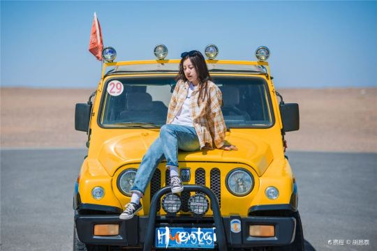 ▲ Sitting peacefully on the yellow off-road vehicle in the wilderness breeze. Sunlight spills over as the red flag atop the vehicle flutters vigorously. Behind lies an endless open road, while the heart drifts afar with the wind—every inch of air brimming with the scent of freedom. This is the unique wilderness wandering time that belongs solely to the Dunhuang Yardang National Geopark.