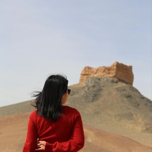 ▲ Clad in red, standing alone in the vast desert. The wind gently brushes through my hair as the ancient ruins in the distance silently whisper tales of time. At this moment, time seems to stand still. I gaze upon the boundless expanse, feeling the weight of history and the grandeur of nature, as if stepping into a thousand-year-old dream. Every breath is filled with endless vicissitudes and poetic beauty.