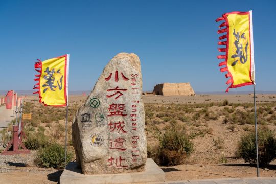▲ At the western end of the Hexi Corridor, the massive stone monument of the Yangguan Ruins stands prominently. The inscription "Site of Ancient Yangguan" seems to recount its former prosperity. Once a vital pass along the Silk Road, it bustled with camel caravans and merchants. Today, only ruins remain in the vast desert, yet they still bear the weight of profound history, evoking the poignant past described in the verse, "Beyond Yangguan to the west, no old friends you'll meet."