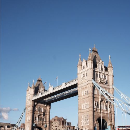 ▲ Under the crystal-clear blue sky, Tower Bridge stands majestically spanning the River Thames. This Gothic Revival-style bridge features towering twin towers with ancient, solid stone structures adorned with exquisite carvings and decorative details that narrate legendary craftsmanship of the past. Its spires and crosses reach straight toward the heavens, as if in dialogue with the sky.