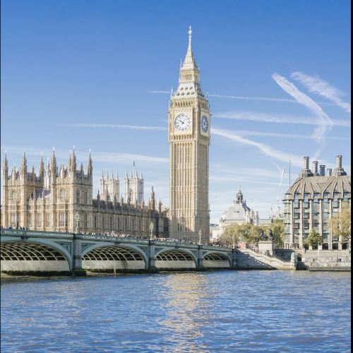▲ Under the clear blue sky, the Thames River sparkles and flows gently. Along its banks, the Palace of Westminster outlines a breathtaking skyline with its ornate Gothic Revival spires and flying buttresses, exuding solemnity and elegance. As the palace's iconic landmark, Big Ben (now called the Elizabeth Tower) towers into the clouds, its honey-colored stone facade appearing both imposing and timeless. The clock face resembles deep-set eyes, its hands marking the passage of time. Bathed in sunlight, the tower glows with a soft radiance, harmonizing beautifully with the river's shimmering reflections.