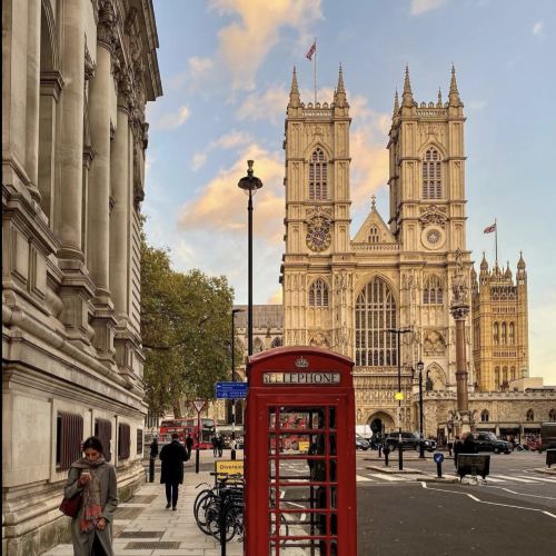 ▲ At dusk, the golden afterglow drapes Buckingham Palace in a dreamy veil. This solemn and elegant structure, with its orderly symmetrical layout and exquisite columnar architecture, exudes royal majesty. In front of the palace, the Victoria Memorial shines brilliantly. On the pristine marble pedestal, the seated statue of Queen Victoria appears serene and lifelike. The winged Victory sculpture at the top seems even more dynamic in the twilight, as if ready to soar beyond the heavens. Surrounding figures, holding scepters or laurel wreaths, appear to recount past glories.