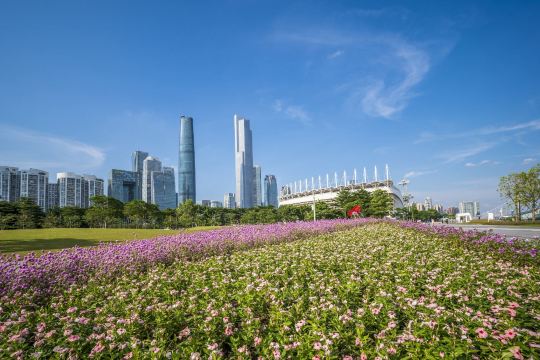 ▲ Huacheng Square, the new central axis square of Guangzhou city, is surrounded by the Children's Palace, Grand Theater, Library, and Museum. The square features an artificial view lake, large fountains, a lighting plaza, and is encircled by greenery with five flower islands that bloom all year round. It also hosts activities such as flower markets and light festivals.