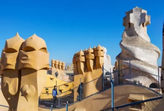 ▲ • La Pedrera – Casa Milà is one of the masterpieces by the renowned architect Antoni Gaudí, designated as a UNESCO World Heritage Site in 1984. • Famous for its stunning stone façade, the building resembles a giant wave rising along Passeig de Gràcia, presenting a monumental sculpture standing 30 meters high and 84 meters wide. • The rooftop terrace of La Pedrera – Casa Milà is an iconic landmark of Barcelona, offering breathtaking 360º panoramic views of the city.