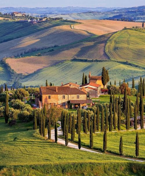 ▲ Val d'Orcia: The Dreamy Countryside of Tuscany Val d'Orcia, a UNESCO World Heritage Site, epitomizes the idyllic Tuscan landscape. Across its vast expanses, rolling hills are dotted with rustic farmhouses, towering cypress trees, and golden wheat fields, painting a breathtaking scene that changes with the seasons. Whether it's the vibrant blooms of spring or the fiery hues of autumn, the beauty is utterly enchanting. The region is also home to medieval towns like Montepulciano and Montalcino, where you can wander through narrow alleys, savor world-renowned Brunello wine, and immerse yourself in the serene charm of the Italian countryside.