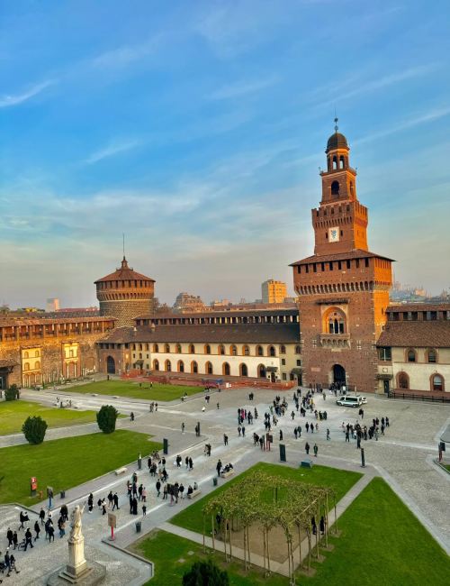 ▲ Explore the Renaissance fortress featuring Michelangelo's final masterpiece "The Deposition"; ascend the watchtower for panoramic views of Milan, stroll through red-brick arched courtyards capturing symmetrical aesthetics. Discover medieval armor in the underground armory, admire replicated Leonardo da Vinci ceiling frescoes in the top-floor mural hall. At dusk when the walls turn golden, join a guided tour to uncover secret passage legends.