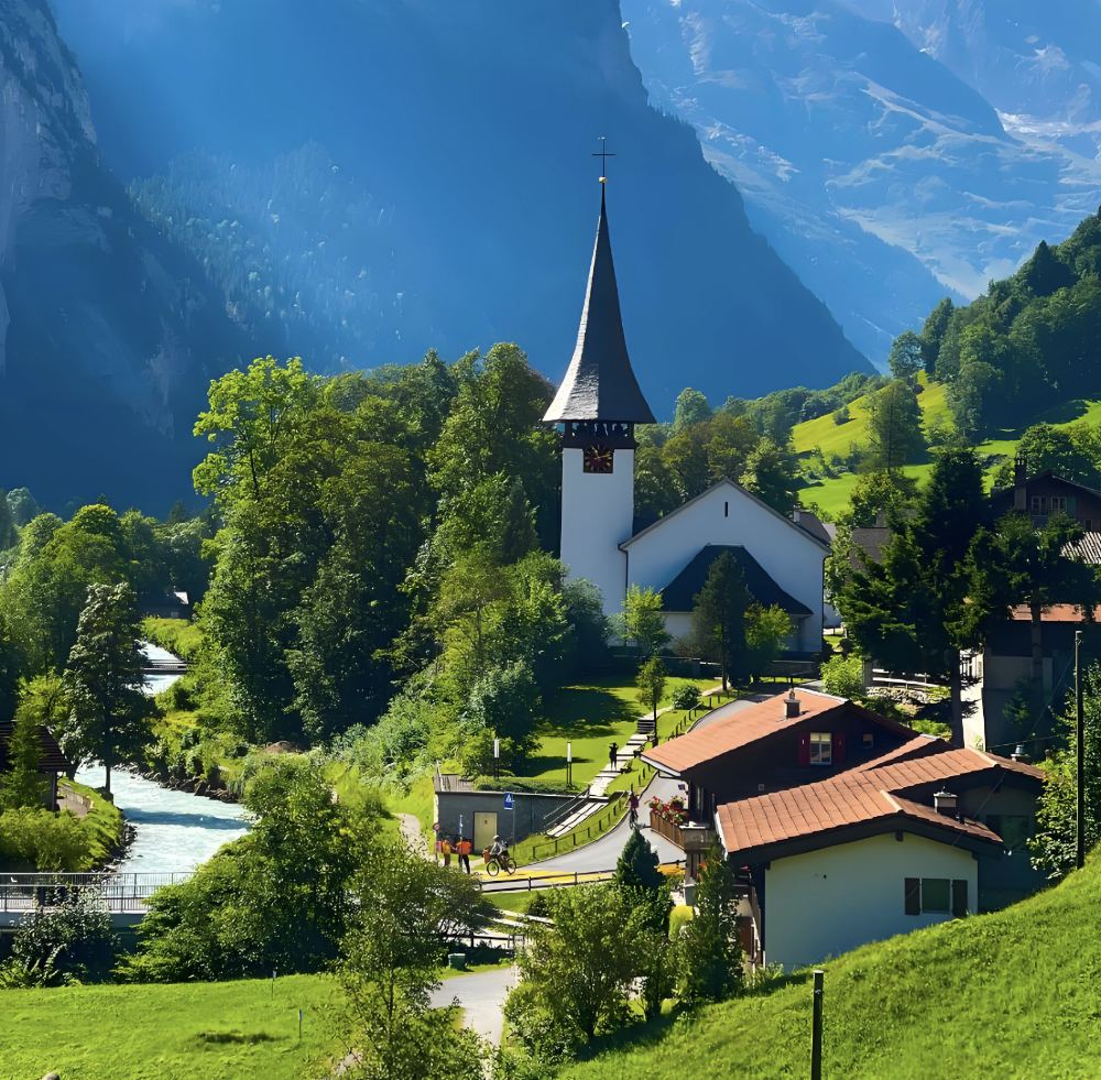 ▲ Lauterbrunnen (also translated as Lüdebanna) is a small town in the Interlaken district of Bern, Switzerland. Located to the west of the Jungfraujoch - Top of Europe region, it features over 70 cascading waterfalls and streams descending from the cliffs. The German name "Lauterbrunnen" combines "laut" (meaning loud) and "Brunnen" (meaning spring or well), truly living up to its reputation as the "Valley of Waterfalls." The Staubbach Falls serves as the village's iconic view, celebrated in poetry by Goethe and Wordsworth.