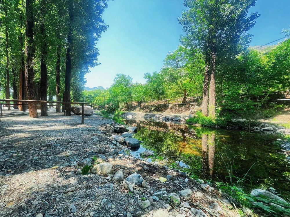 Nestled among verdant mountains and shaded by lush trees, a crystal-clear stream meanders through the area, filling the air with the refreshing scent of greenery—a true natural oxygen bar! Whether playing by the stream during the day or stargazing on the grass at night, every moment here is pure bliss.