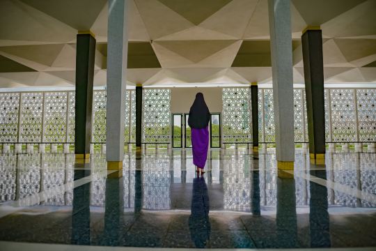 ▲ A groundbreaking architectural marvel, the National Mosque, completed in 1965, replaces traditional domes with an 18-point giant umbrella main hall. Its 73-meter-high concrete ribs support a 16-pointed star blue roof, symbolizing the unity of Malaysia's 13 states and 3 federal territories. The minaret features an unconventional rocket-inspired design that soars into the clouds, hinting at Islamic civilization embracing the future. The open courtyard philosophy features 52 hectares of reflecting pools mirroring the perforated star roof, with flowing water replacing walls to embody inclusiveness.