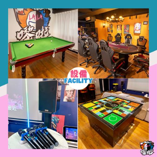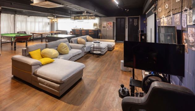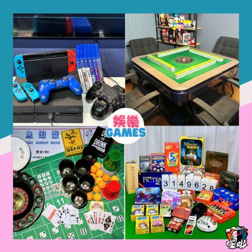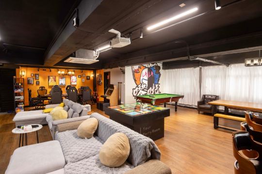 Includes a 120-inch projection screen, speakers with 4 microphones, free WIFI, electric mahjong, professional-grade poker table, PS4, racing steering wheel, Switch, retro arcade games, American pool, table tennis, claw machine, dart machine, Beer pong, Slap Cup, dice cup, fish-shrimp-crab, werewolf, 9upper, and many board games.