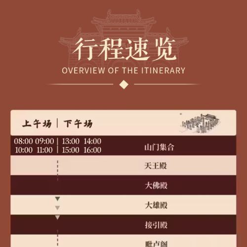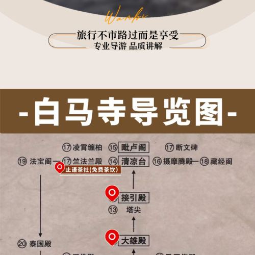 1. The guide will contact you via SMS or phone call the night before. Daily time slots: 8:00, 9:00, 10:00, 11:00, 12:00, 13:00, 14:00, 15:00, 16:00. As this is a join-in tour, please arrive at the White Horse Temple ticket gate 10 minutes before your booked time slot. Being late for more than 20 minutes will be considered as forfeiting the tour, and no refunds will be issued. Thank you for your understanding!