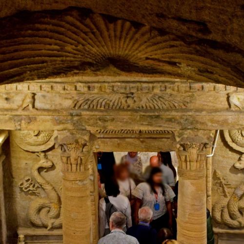▲ Descend the stone steps into the multi-level underground tombs to admire the unique coffin carvings and stone statues, unlocking the mysterious panorama of ancient Egyptian-Roman funerary culture.
