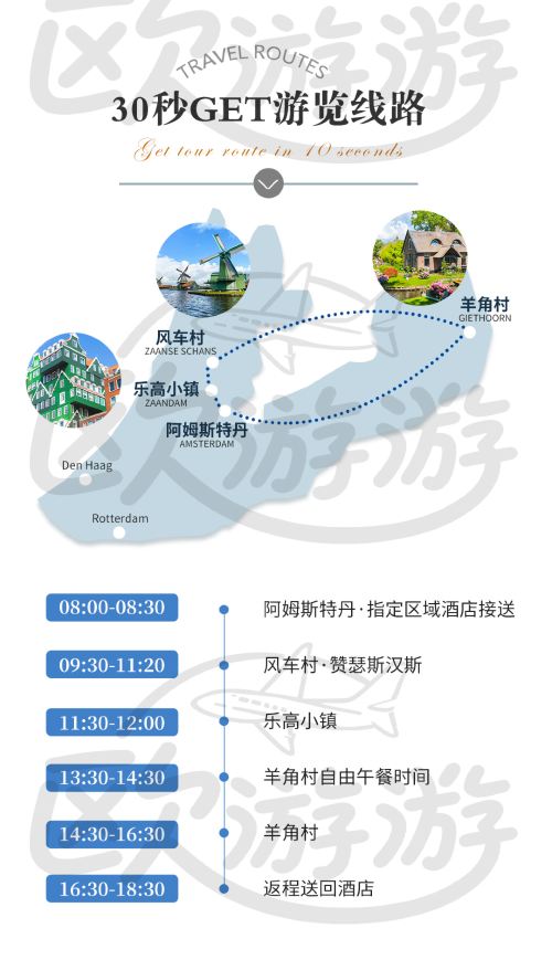 Amsterdam Giethoorn + Windmill Village 1-day tour with Chinese service/door-to-door pickup