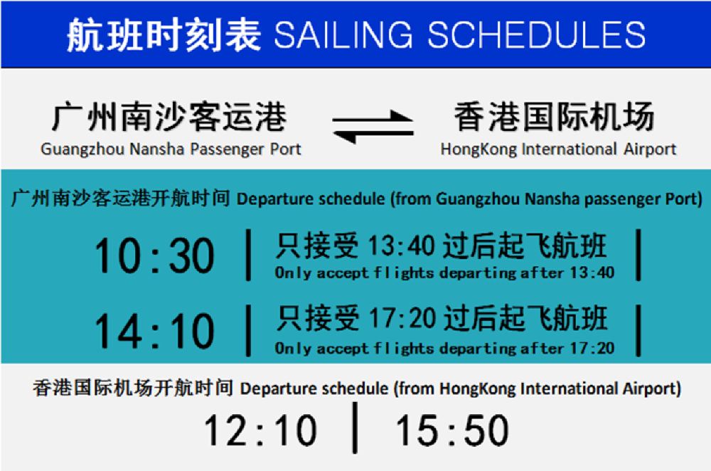 5. If the airline of your flight does not participate in the operation of Hong Kong International Airport SkyPier, it is not included in the service scope of Nansha Passenger Port. For details, please refer to the ticket purchase information.