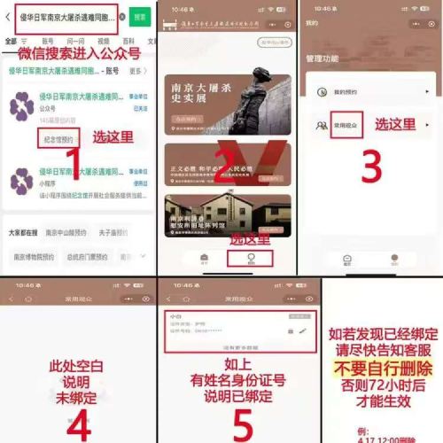 1. Each ID can only be linked to one account on the WeChat Nanjing Massacre Memorial Hall official mini-program. If already linked, please contact customer support. After deleting the information, you must wait 72 hours before linking and booking again.