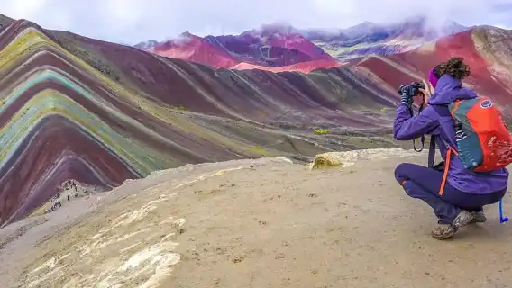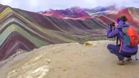 Experience the vibrant colors of Rainbow Mountain from a unique perspective.