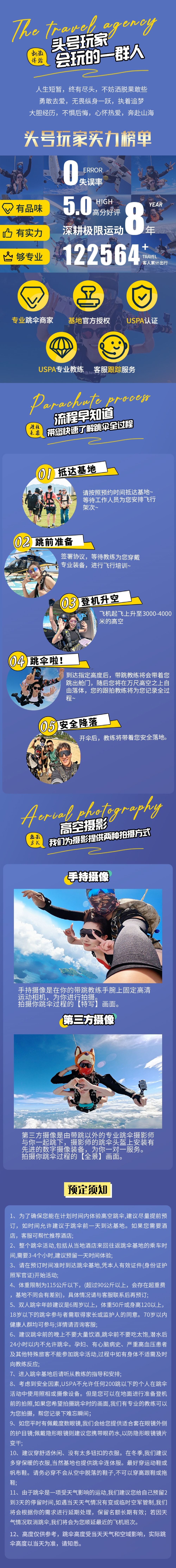7. The skydiving altitude is based on the airspace application height, and the freefall time is for reference only. The actual skydiving altitude and freefall time may be adjusted by the instructor due to uncontrollable factors such as weather/airspace conditions.