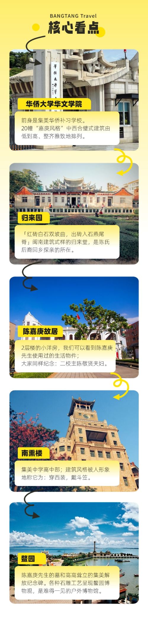 The Jimei School Village Archway—Huaqiao University—Dragon Boat Pool—Daonan Building—Guilai Hall—Chen Jiageng's Former Residence—Nanxun Building
