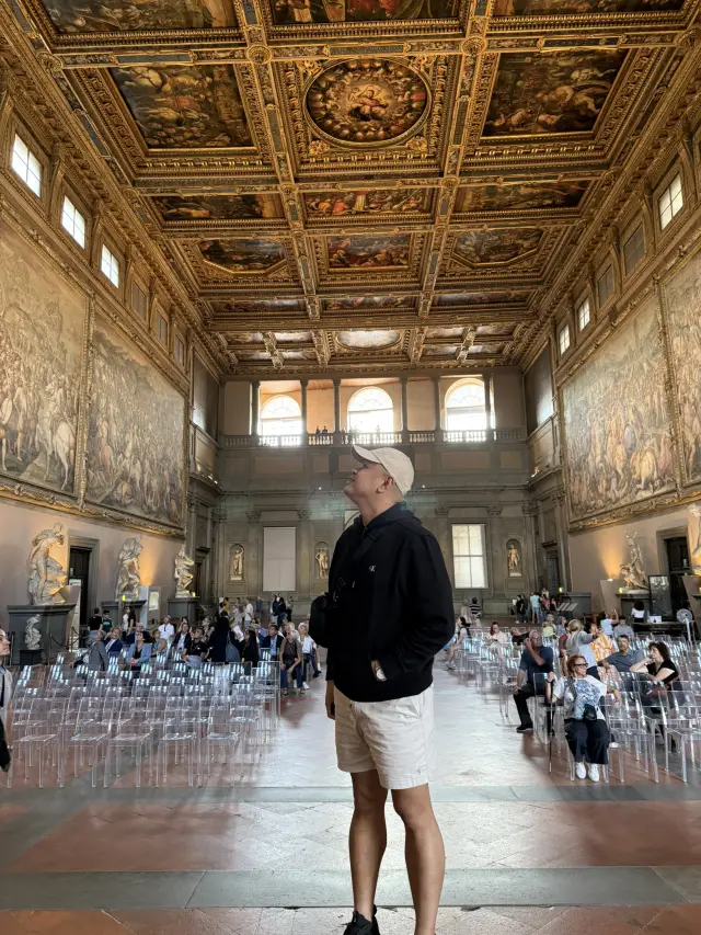 Florence is a beautiful city. My initial love for it came from Xu Zhimo's name for this city, "Firenze", what a beautiful and poetic name. The first stop was Palazzo Vecchio, which the tour guide called "Old Palace" and also translated as Palazzo Vecchio. It is a fortress-style palace built in the 13th century. At first glance, it looks plain. In addition to the arched double-leaf windows on each floor, the only decoration on the outside is a lion sculpture on the throne-shaped decorative platform above the main entrance, which is the emblem of Florence - a lion guarding lilies. . Now it is the City Hall of Florence.